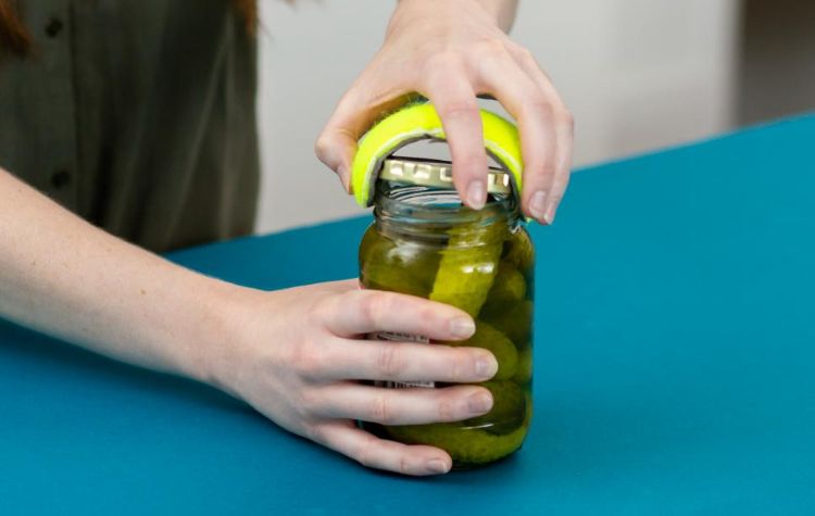 Abrir tapas apretadas requiere mucha energía, y necesitas tener un buen agarre, especialmente si el frasco es de vidrio. Eso se debe a que el recipiente puede resbalar de tu mano y romperse. Y, por supuesto, limpiar el desastre llevará tiempo. Sin mencionar que podrías lastimarte con el vidrio roto. Si deseas evitar tal situación, deberías adoptar este truco. Solo toma una pelota de tenis y corta una parte de ella en la forma que se muestra en la imagen de arriba. Después de probar el truco, te sorprenderá lo fácil que es abrir contenedores apretados.