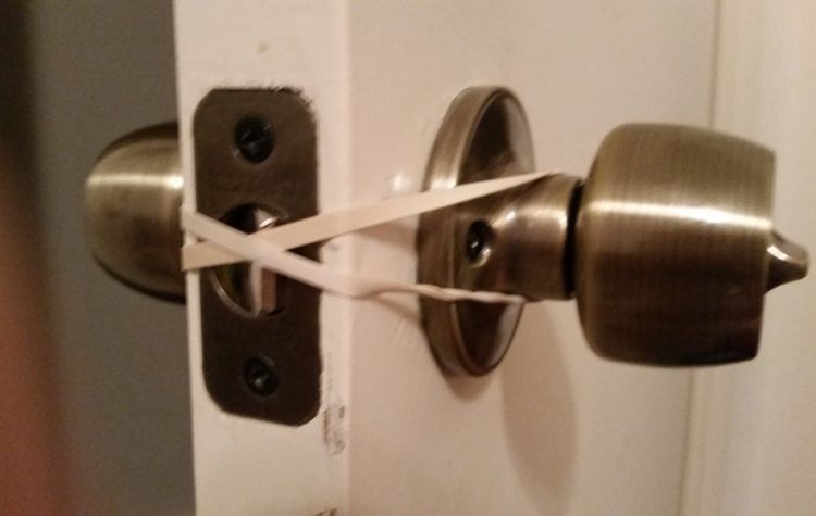 Si tienes puertas en tu hogar que se cierran tan pronto como sueltas la manija, debes estar al tanto de la frustración que puede causar. Después de todo, tendrás que abrirla una y otra vez si te estás moviendo de un lado a otro. Por ejemplo, imagina que estás moviendo muebles a tu habitación, pero la puerta se cierra mientras traes cada pieza. Ahora tendrás que dejar todo en el suelo, luego abrir la puerta y recoger todo de nuevo. Para evitar esa situación, lo único que necesitas hacer es pasar una banda elástica alrededor de las manijas de la puerta. Esto bloqueará el pestillo y así la puerta no se cerrará.
