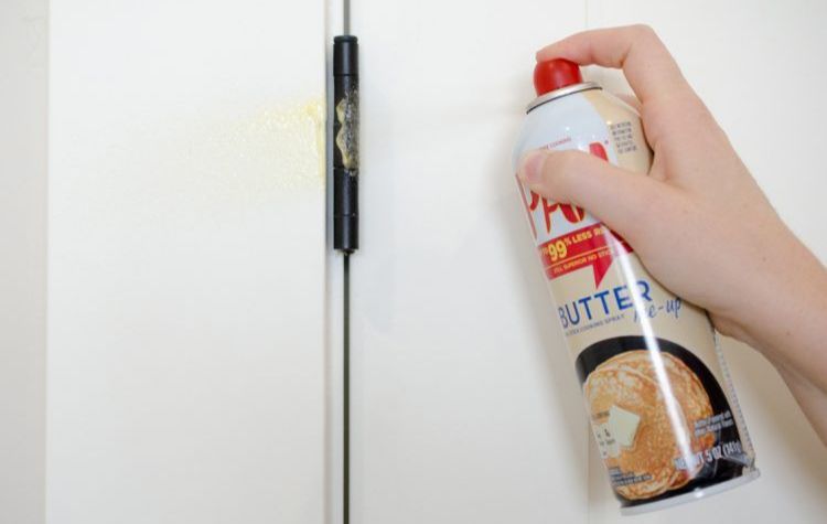 Repare puertas y gabinetes ruidosos con aerosol de cocina.