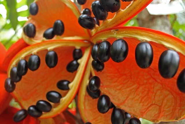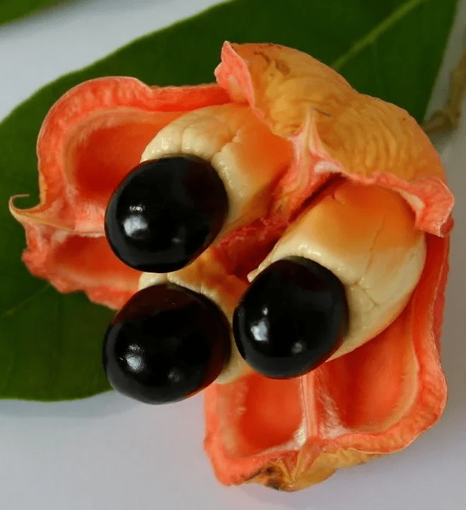 El fruto de ackee que se ve aquí arriba es precisamente cómo debería esperarse que se vea cuando está listo para ser utilizado. Creciendo como nativo de Jamaica, se utiliza como una delicia en la mayoría de los platos jamaicanos. La imagen que se ve arriba es de cuando la fruta ha madurado. La fruta se presenta con la semilla sobresaliendo de la pulpa blanca. Esa es la única parte del fruto/vegetal que puedes comer. El resto es sumamente tóxico, y sí, la fruta de ackee también se utiliza como verdura, ya que es una gran parte de la red alimentaria en Jamaica.