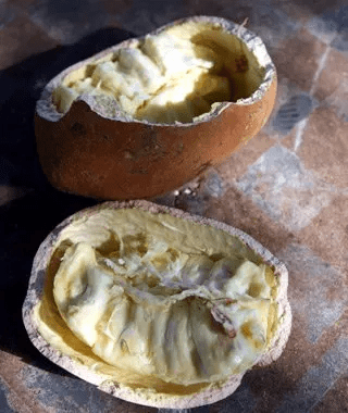 Perteneciente a la familia de la morera y el árbol del pan, el fruto del pan se encuentra a menudo en las regiones del sudeste asiático, así como en las islas del Océano Pacífico. La forma del fruto del pan es similar a un melón, casi del tamaño de un balón de fútbol normal. La piel exterior es de color verde brillante con una superficie texturizada. Al pelarla, el interior tiene una pulpa con semillas en el medio.