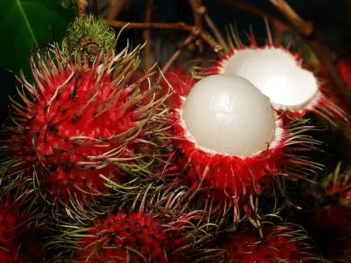 Rambután is a local name that is most commonly used in Malaysia and other Asian countries. The fruit is two inches in length and is pure white on the inside and read and hairy on the outside. As shown in the picture above, the word Rambután means hairy in Malay, which is why it is known as the “hairy fruit”. There are two famous varieties of this fruit. Yellow and red. When un-ripened; it is green, and when it ripens, it turns yellow or red. The skin of the fruit is easy to break off and is soft to the touch.