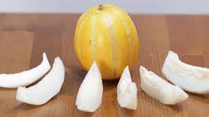 Melón coreano, as seen in the picture above, is gown specifically in Asian countries. It is believed that the melon has travelled from India, Pakistan down the silk road to China and then to Korea. The fruit is sweet to taste, and some say the flavor goes between honeydew to cucumber. The texture of the fruit is easy to slice and open. The thin skin on top of the fruit and the tiny minute seeds are all a culmination of the fact that you can easily eat it wholly. You don’t even need to cut it and take off its skin if you don’t want to.